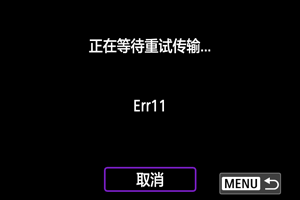 问题解决后,将会自动传输原本无法发送的图像。启用此选项时,无论是使用自动传输还是通过FTP传输拍摄的图像,传输失败后都会自动尝试重新传输。请注意,如果取消传输或关闭相机,则不会尝试自动重试。