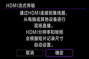 HDMI输出分辨率和帧频会自动调整以适合短片记录尺寸。