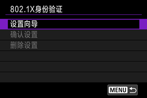 选择[802.1X身份验证]可使用设定向导来设定、查看或删除802.1X身份验证设置。