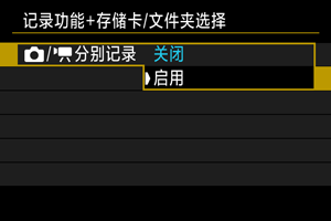 选择[启用]会自动配置静止图像和短片的记录方法。短片会记录至存储卡,而静止图像会记录至存储卡
