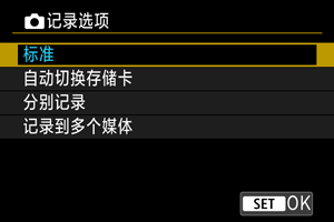 记录选项]设为[标准]/[自动继续记录]时,选择用于记录和回放的存储卡。