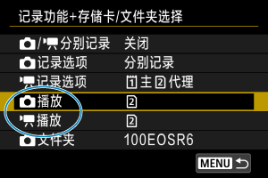 子]/[记录到多个媒体]时,选择用于回放的存储卡。