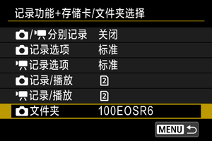 相机中存在两张存储卡时,可以设定相机记录到卡的方式,还能选择用于记录和回放的存储卡。也可以设定保存静止图像的文件夹。