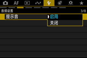 在对焦时、触摸控制期间等情况下启用提示音。