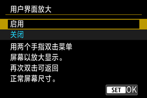 可以通过用两个手指双击以放大菜单屏幕。再次双击可恢复至初始显示大小。