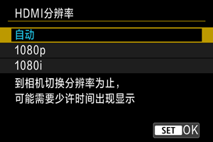 设定当使用HDMI连接线将相机连接至电视机或外接记录设备时所用的图像输出分辨率。