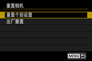 可以将相机的拍摄功能设置和菜单功能设置恢复为其默认值。
