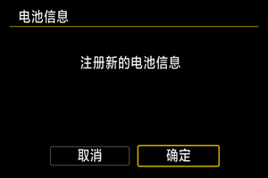 最多可在相机中注册6块电池LP-E6P。要为相机注册多个电池,对每个电池执行以下操作。