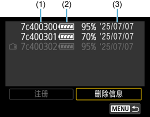 - 在将电池注册到相机中,在步骤2中选择[删除信息]。