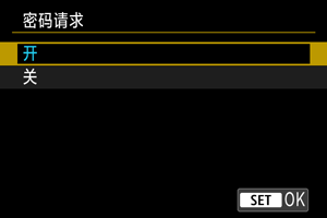 可以选择在电源开关置于时或相机从自动关闭电源恢复运行后是否需要输入密码。