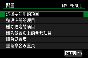 可以从[MY MENU*]重新命名我的菜单设置页。