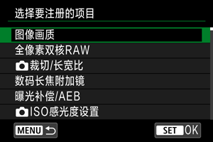 在我的菜单设置页下,可以注册您经常调整的菜单项目和自定义功能。