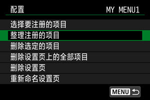 可以改变我的菜单中的注册项目的顺序。选择[整理注册的项目],选择要重新排列的项目,然后按