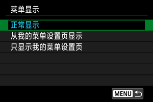 可以选择[菜单显示]设定按按钮时首先出现的菜单屏幕。