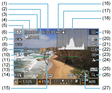 - (25) 显示模拟/光学取景器模拟视图辅助
