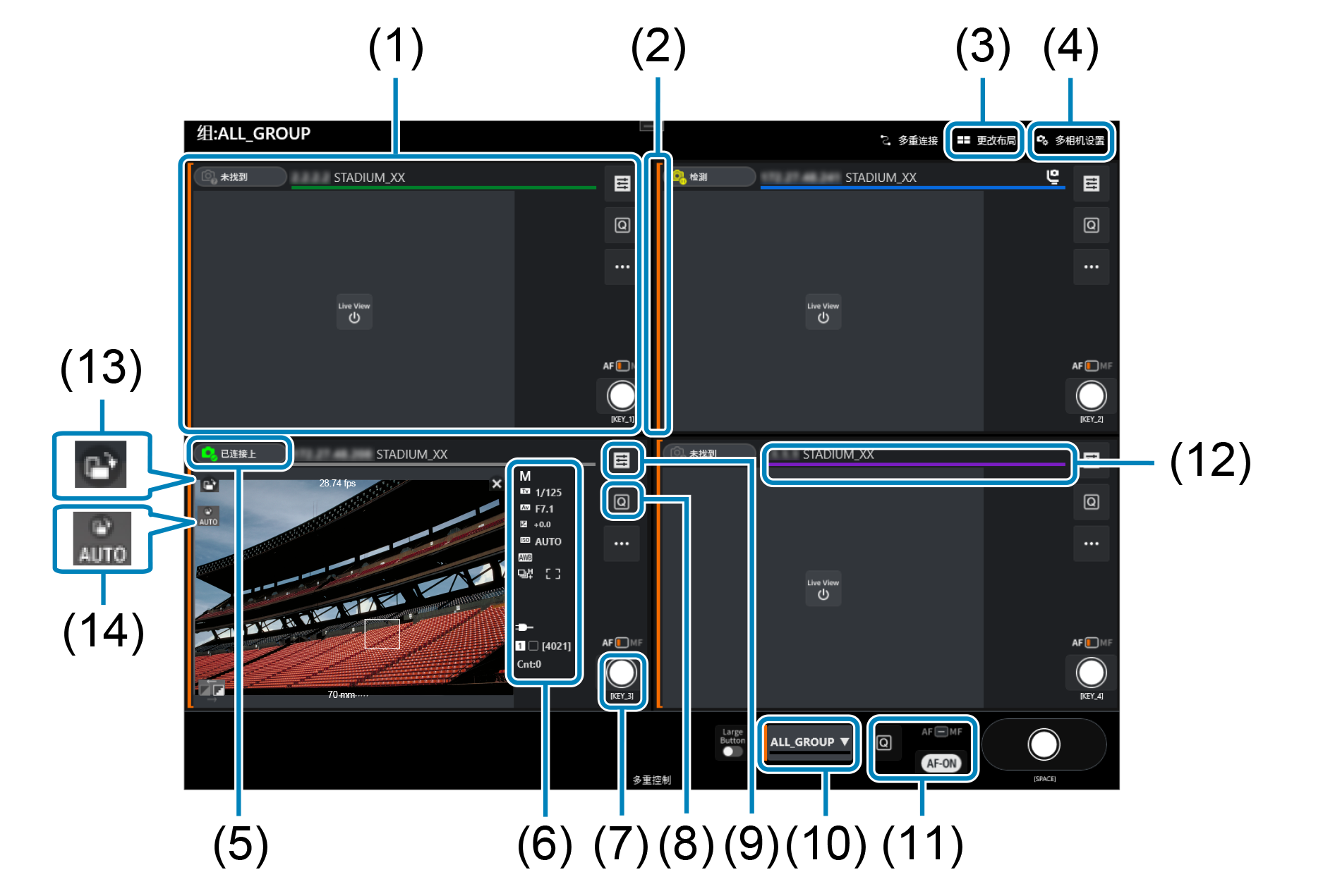 与多视图屏幕1相同,可以通过相机和组进行遥控拍摄和设置更改。