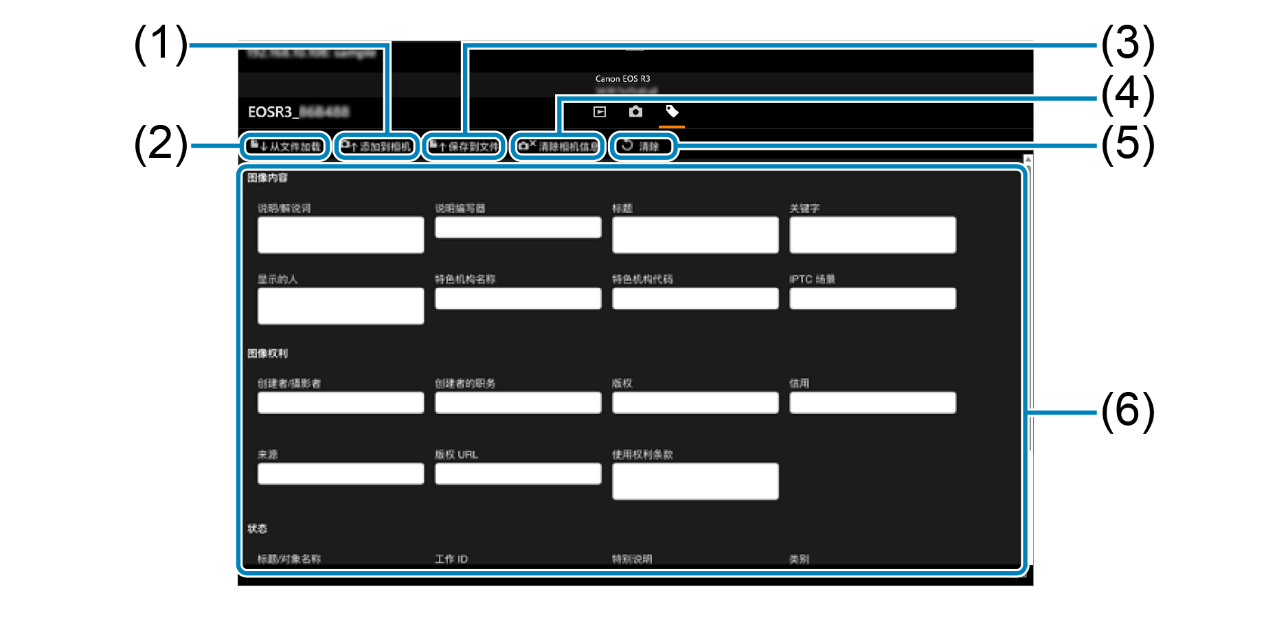 编辑并注册接收端相机的IPTC*信息(说明、作者版权、拍摄地点和其他备注信息)。可使用相机中注册的IPTC信息对图像进行标记。