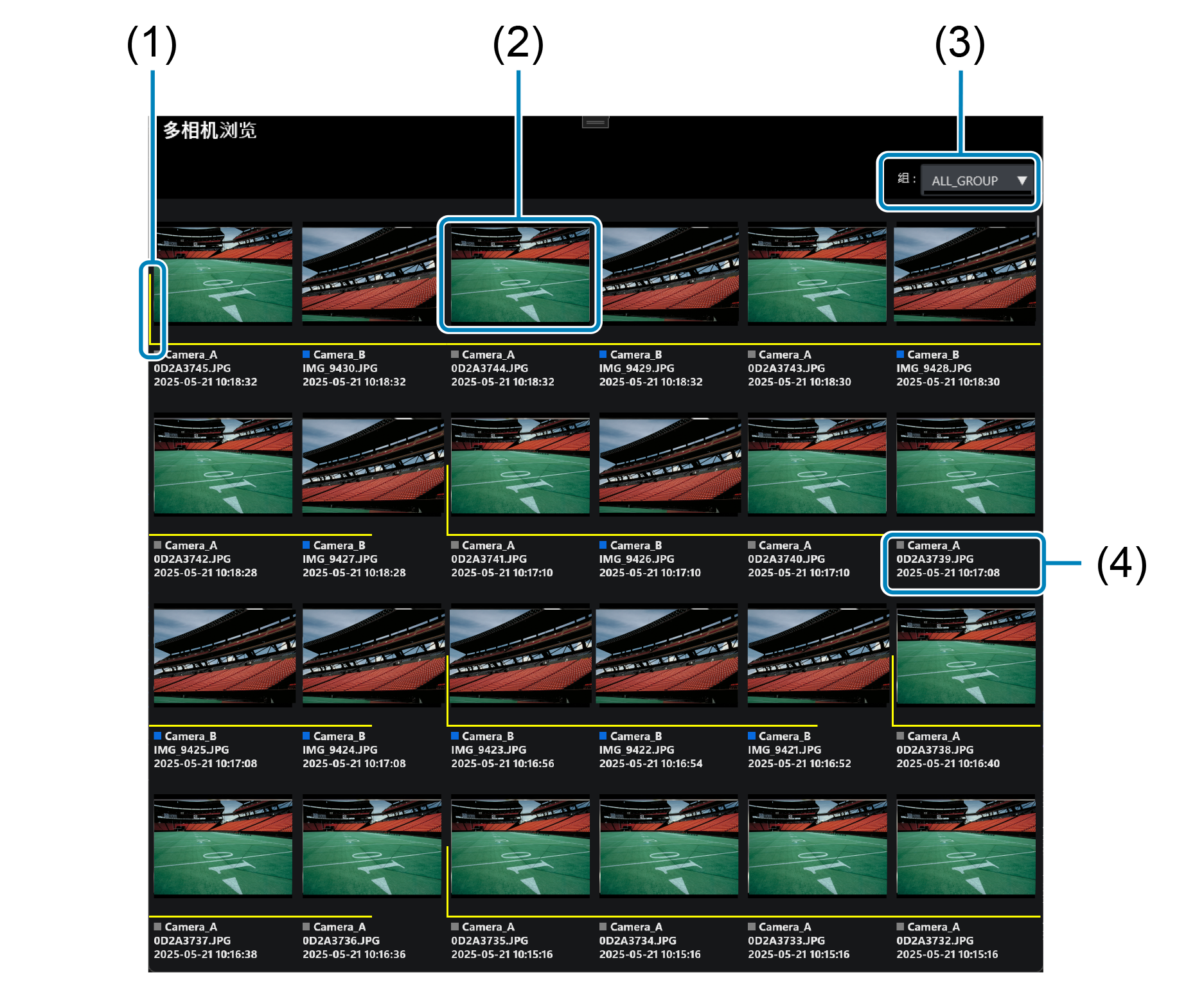 - (4)显示组颜色、相机显示名称、文件名和图像拍摄时间。
