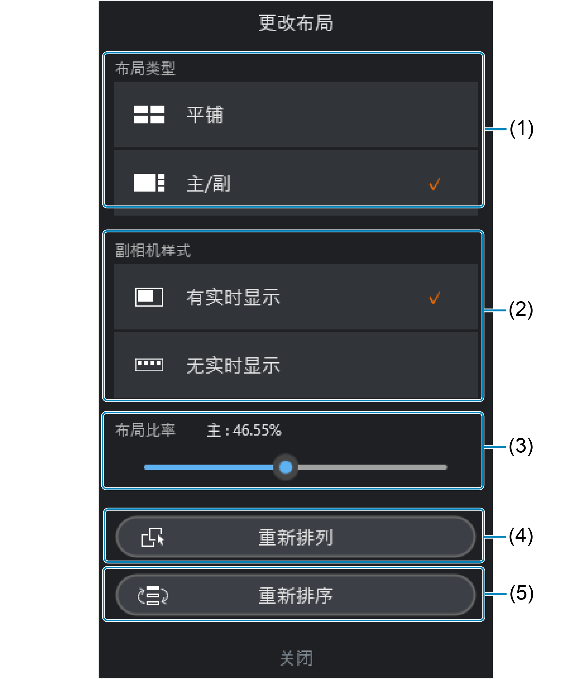 - (2)选择是否包含实时显示。在[布局类型]中选中[主/副]后,可选择此项。
