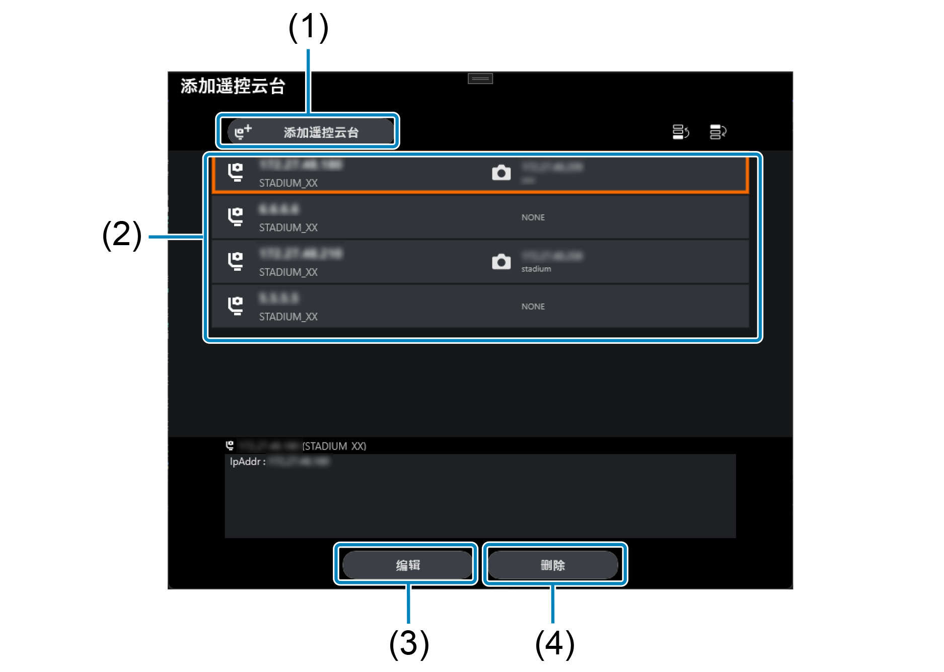- (4)删除已注册的遥控云台时,选择要删除的云台后点击此按钮。