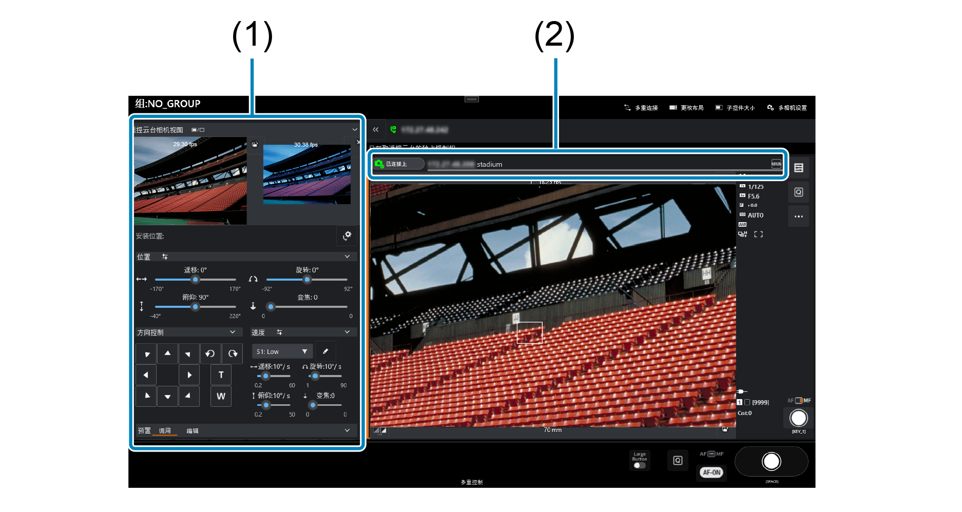 如果遥控云台已连接至相机,则会显示在多视图屏幕2或单视图屏幕上。